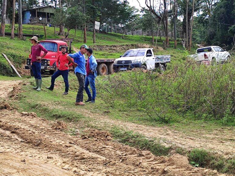 “Hoje, pela manhã, estivemos na beira do Caeté. Levamos três equipamentos para arrumar a ponte e seguir com a reabertura do ramal já dentro da reserva até a sede da mesma,” relatou Moreira. Ele acrescentou que, após a conclusão deste trecho, as máquinas serão deslocadas para o ramal do 16, seguindo até a propriedade do Sr. Mundola, figura conhecida na região.