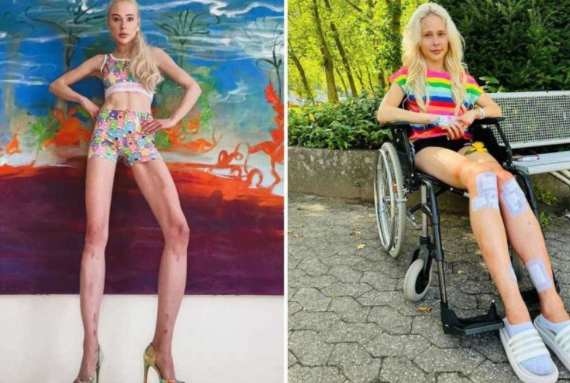 Na primeira operação, ela cortou os ossos da coxa e da perna e colocou hastes nas tíbias. Os cirurgiões alteraram as hastes até que as pernas estivessem no comprimento de “supermodelo”.