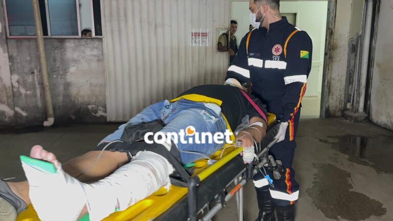 O entregador Caio Paiva de Souza, 19 anos, sofreu várias fraturas após colidir com um carro na noite desta terça-feira (11), na Rua Palmeiras, no bairro Conquista, em Rio Branco.