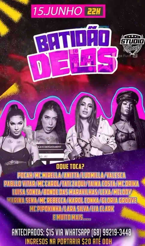 Quer continuar no rock, mas com um som um pouco mais duro? A noite de sexta-feira será de muito Hard Rock no Studio Beer. O funk estava passando em branco, mas como diria Anita: “‘Cês’ pensaram que eu não ia rebolar minha bunda hoje, né?”. No dia seguinte, no Studio, vai ter um compilado com as melhores musas do funk.
