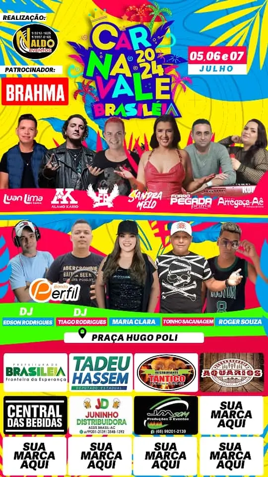 Diferentemente das edições anteriores, o Carnavale deste ano não contará com a presença de shows nacionais. Entretanto, a programação local promete animar os dias 05, 06 e 07 de julho, na praça Hugo Poly, com uma variedade de atrações que celebram a cultura e a diversidade da região.