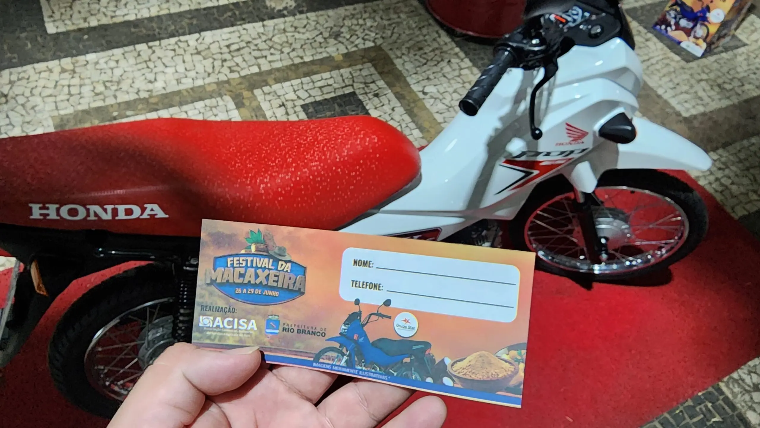 Ao fazer uma compra, o cliente ganha um cupom e, ao preencher, basta inserir na urna no espaço da Honda Grupo Star, na Praça da Revolução, onde acontece o 1º Festival da Macaxeira.