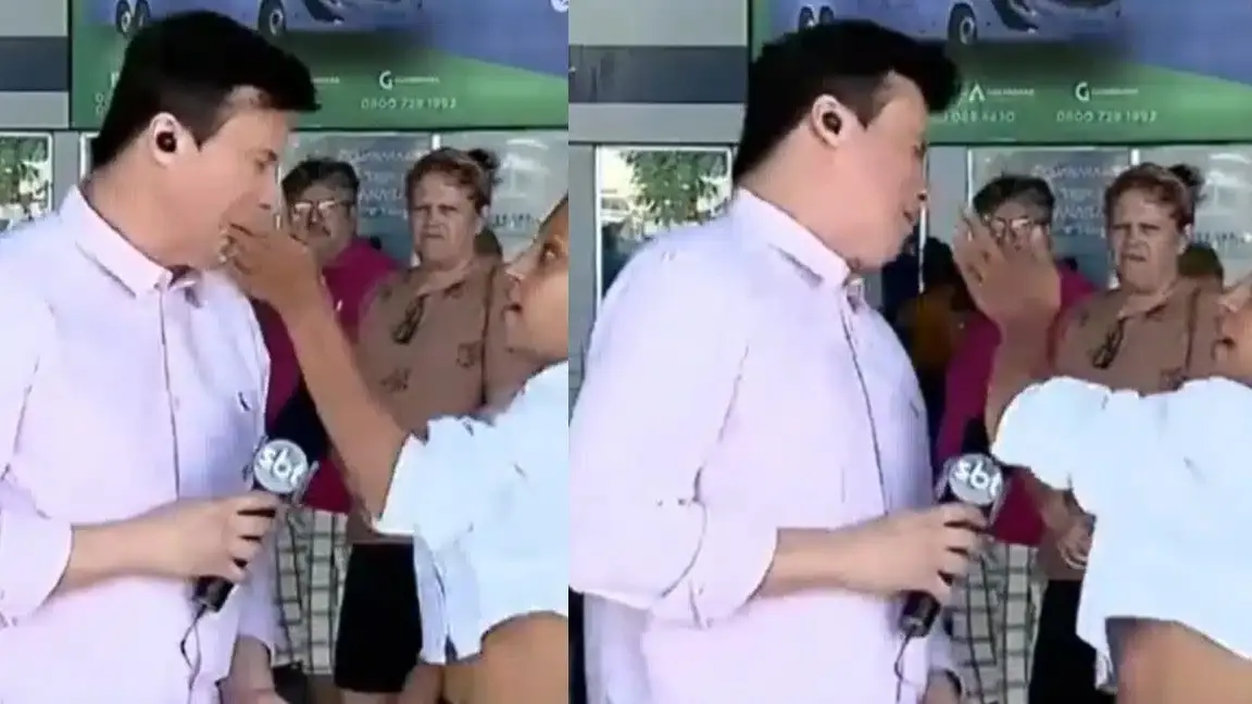 Durante uma entrevista na TV Serra Dourada, afiliada do SBT em Goiás, com mãe e filha para entender melhor a “birra” de uma moça por não ter ganhado um celular, o repórter Lucílio Macedo acabou levando um tapa na cara. O vídeo da agressão viralizou nas redes sociais nesta segunda-feira, 10.