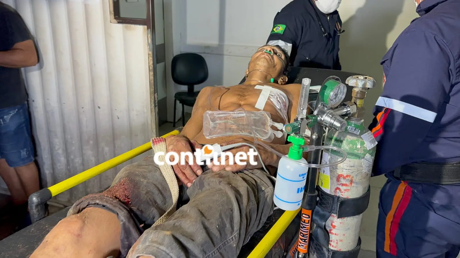 Esforços de Resgate: Equipes do Samu prestam os primeiros socorros a Marcos antes de transportá-lo ao hospital/Foto: ContilNet