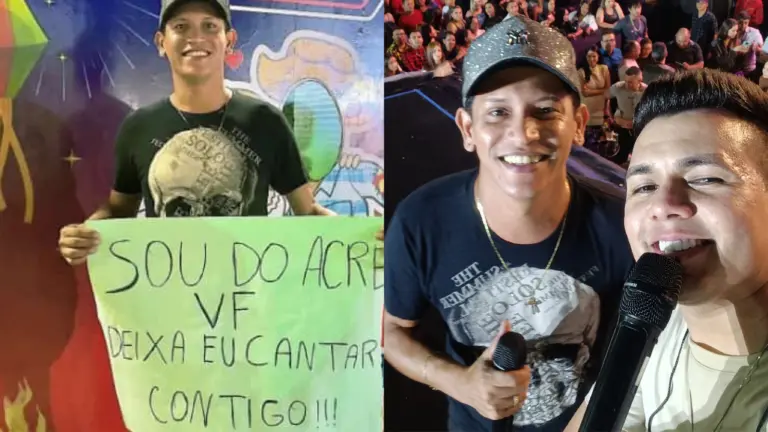 VÍDEO: com cartaz nas mãos, cantor acreano realiza sonho ao cantar com ídolo Vitor Fernandes