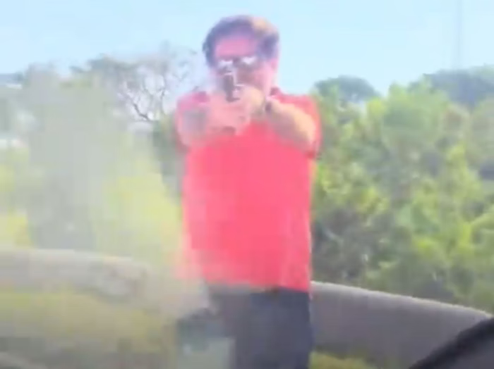 Na gravação, após efetuar os disparos, o homem diz: “O que você quer, filho da p*? Tá feliz, seu filho da p*?”, enquanto dá coronhadas no vidro.