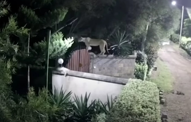 Leoa pulou o alto muro da propriedade e partiu em direção à cadela da família, que estava no jardim/Foto: Reprodução