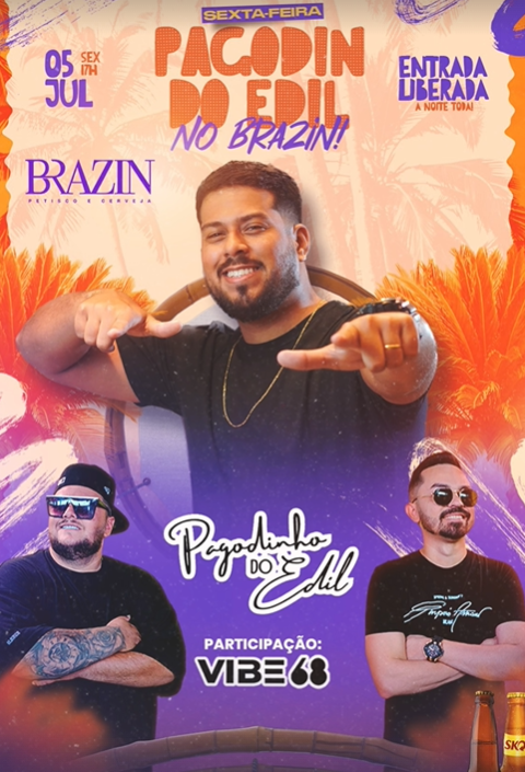 Tá na vibe do pagodinho pra sexta de noite? Então vamos de Brazin, com o já costumeiro Pagodinho do Edil.