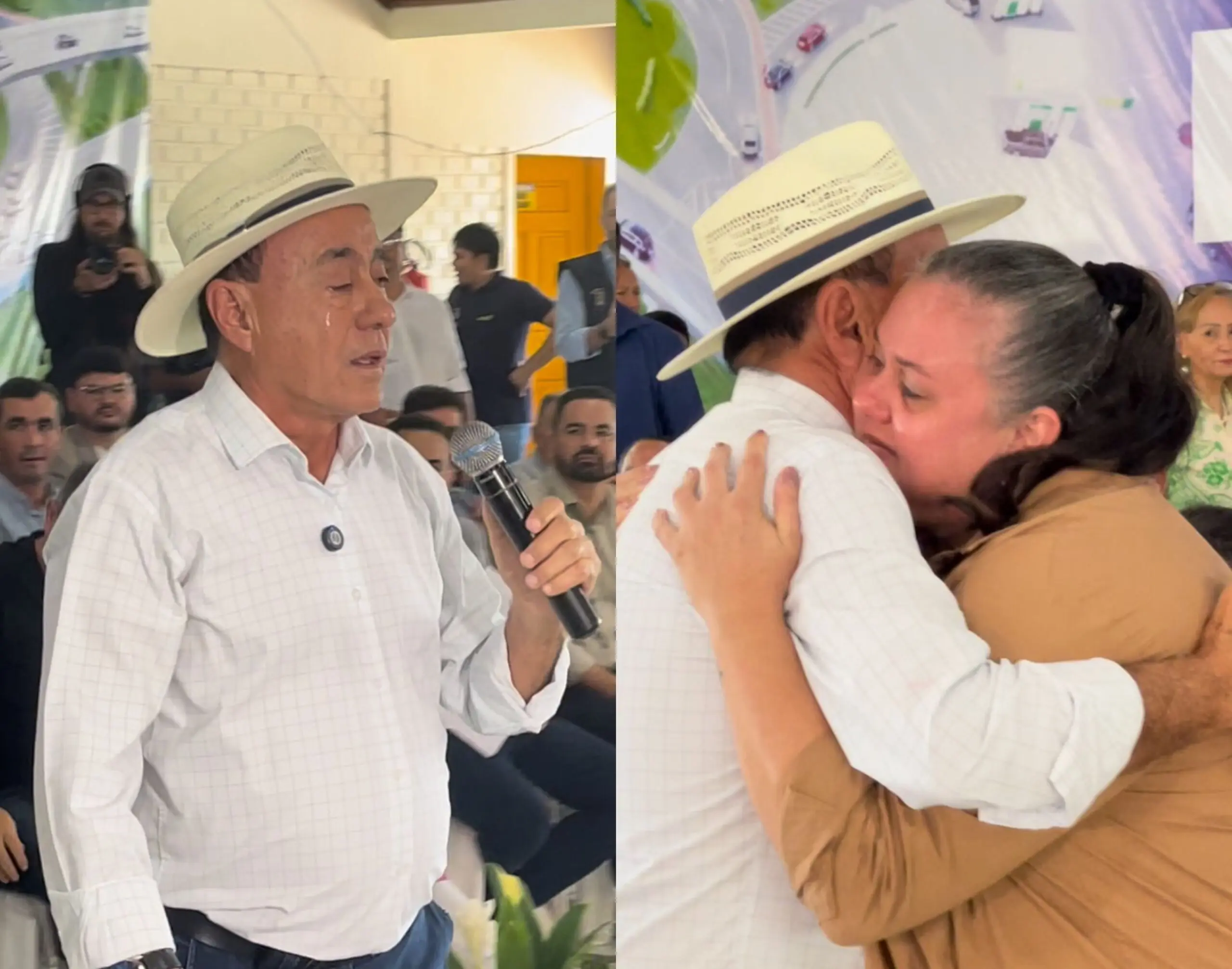 Durante a cerimônia do lançamento do pacote de obras no valor de R$ 50 milhões, nesta quarta-feira (3), o prefeito de Rio Branco, Tião Bocalom, chorou ao lembrar da esposa falecida há 3 anos, Beth Bocalom.