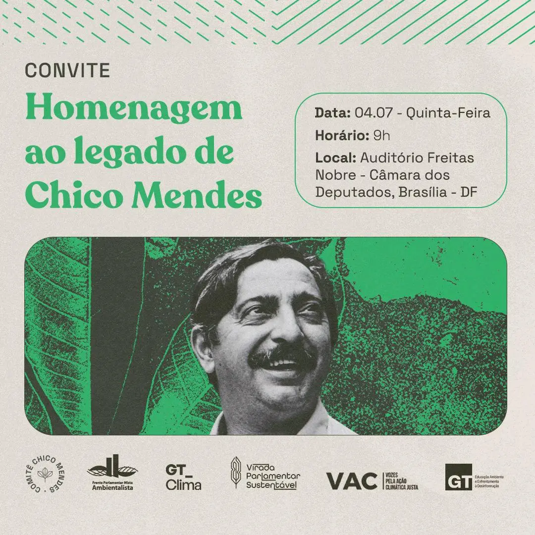 O líder seringueiro Chico Mendes será homenageado na próxima quinta-feira (4), durante uma cerimônia na Câmara dos Deputados, em Brasília.