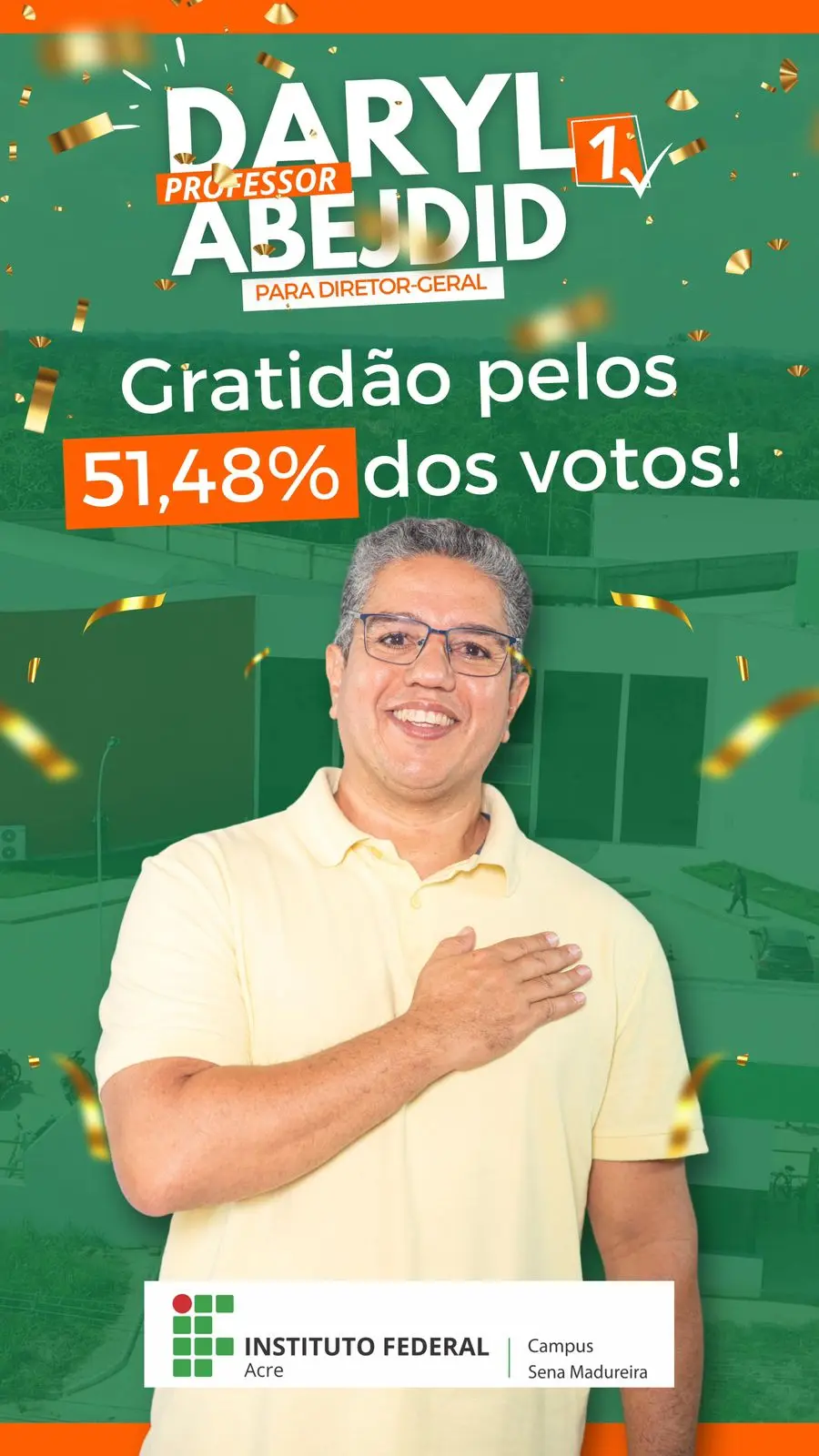 Com 51,48% dos votos, Daryl Abejdid é eleito o novo Diretor-Geral do Ifac de Sena Madureira