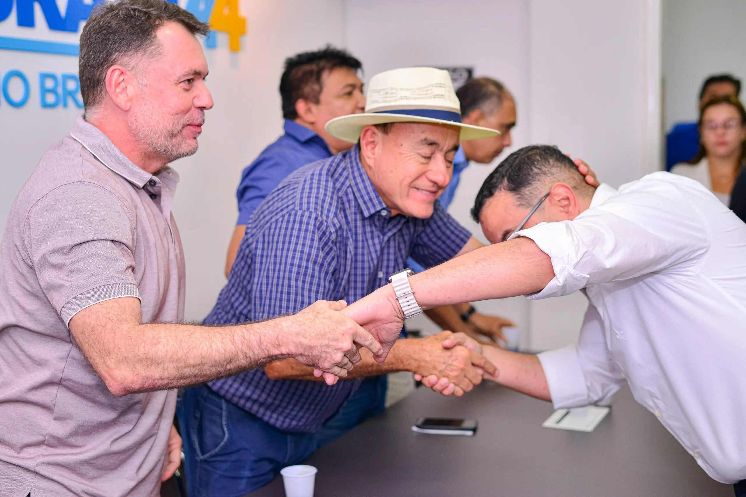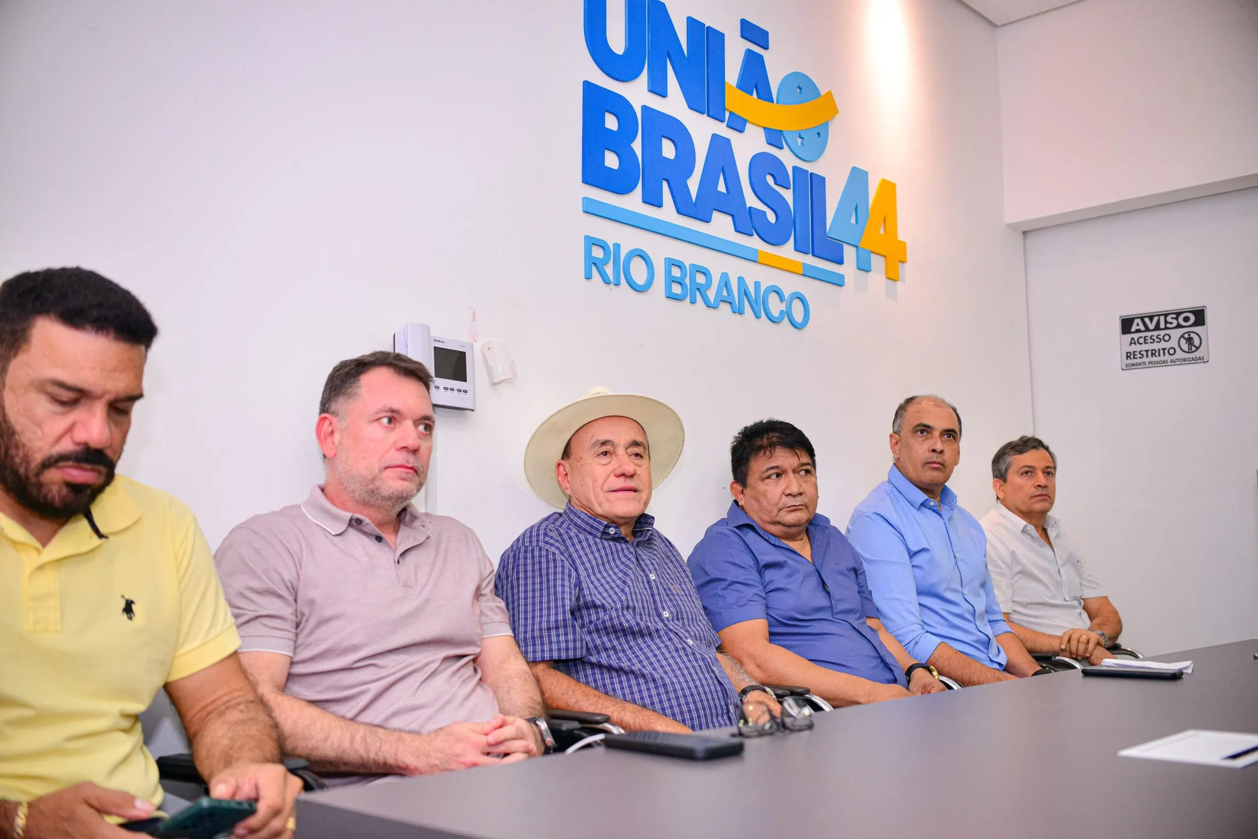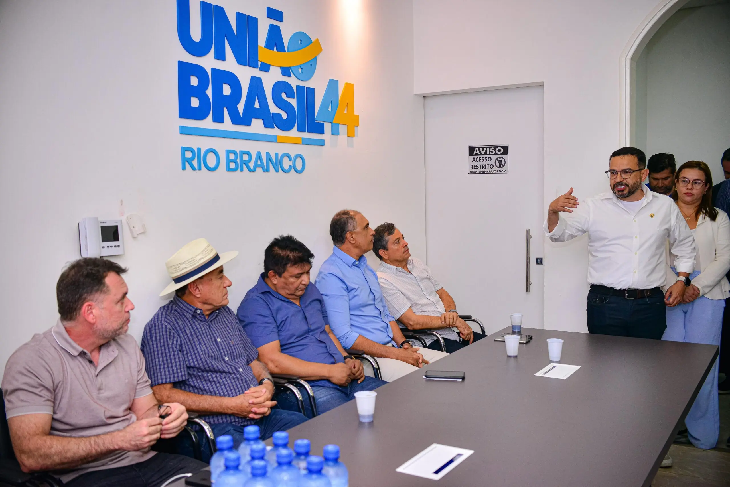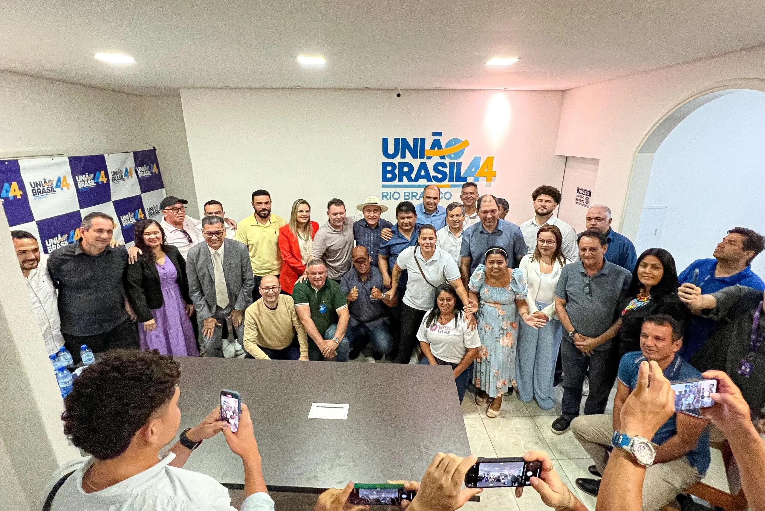 O atual prefeito e pré-candidato à reeleição Tião Bocalom (PL), juntamente com seu vice Alysson Bestene (Progressistas), esteve presente no escritório do União Brasil na noite de terça (16). O objetivo da reunião foi oficializar todos os pré-candidatos da chapa de vereadores do partido para a eleição em Rio Branco deste ano.