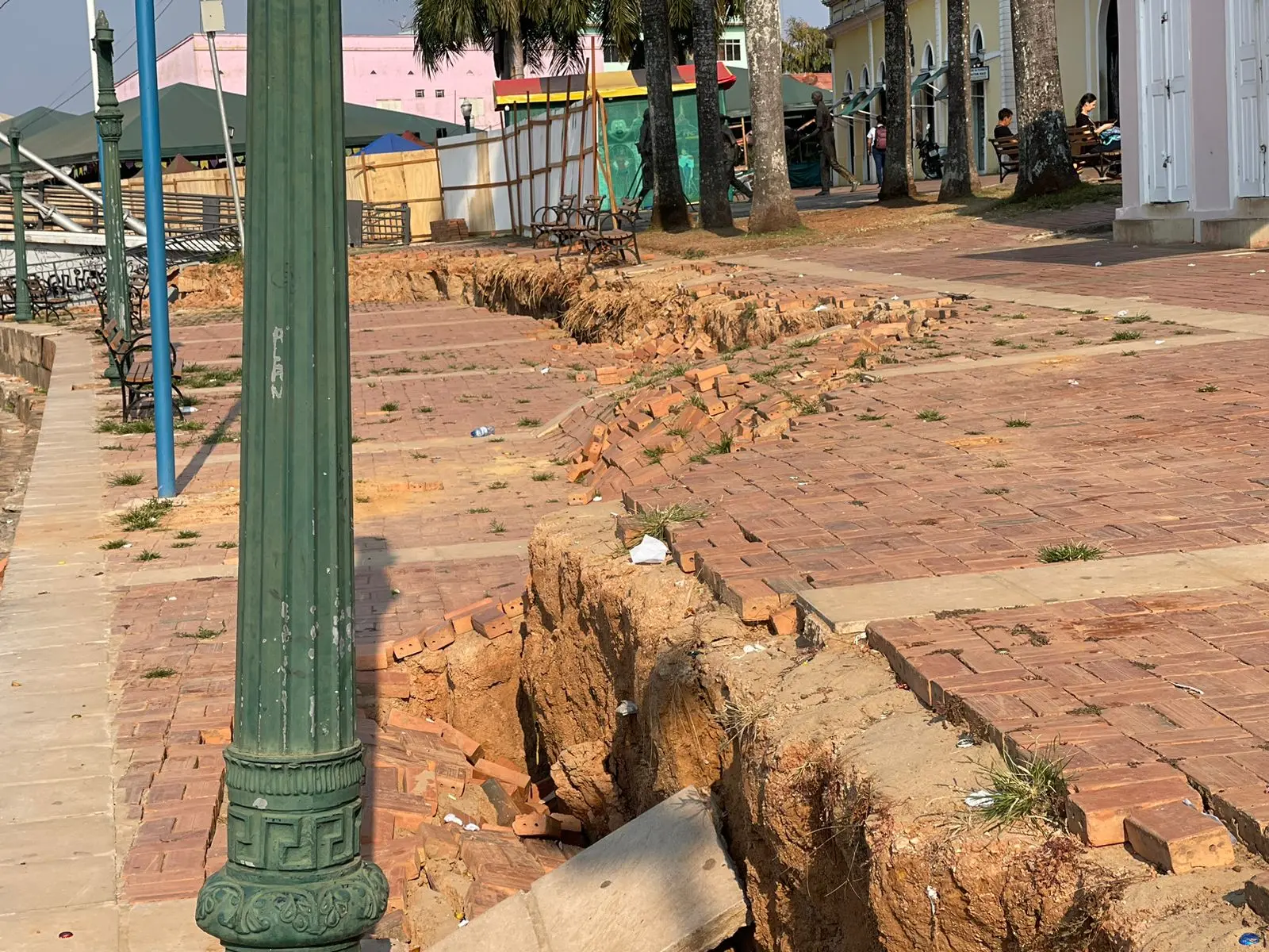 No último mês, uma erosão voltou a causar rachaduras no Calçadão do Mercado Velho. Com os novos surgimentos, o Governo atrelou o problema a um movimento natural do Rio Acre. A causa provável seria a última cheia histórica do rio, ocorrida em maio deste ano.