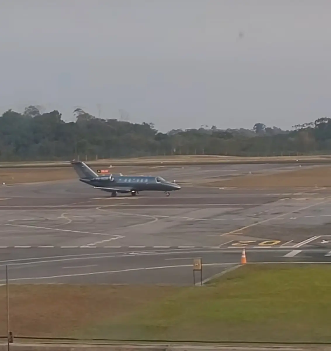 Murilo Huff chegou a Cruzeiro do Sul, no Acre, a bordo de seu jatinho avaliado em cerca de 34 milhões de reais/Foto: Reprodução