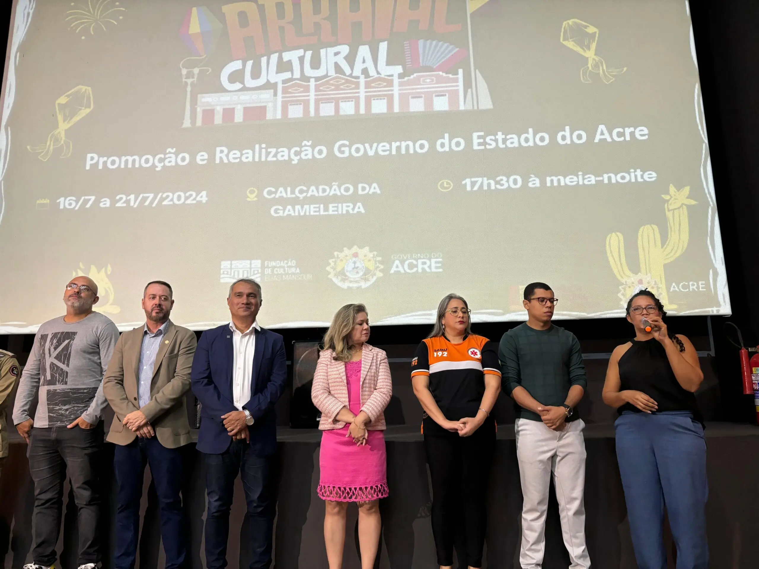 Organizado pela Fundação de Cultura Elias Mansour (FEM), o Arraial Cultural do Governo do Acre recebeu uma festa de lançamento nesta quarta-feira (10). O evento que contou com nomes da cultura do estado foi realizado no Cine Teatro Recreio.