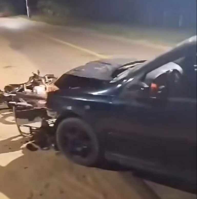 Um grave acidente de trânsito foi registrado na noite desta quinta-feira (25), no bairro Boca da Alemanha, em Cruzeiro do Sul. A colisão envolveu uma motocicleta e um carro de passeio e aconteceu em frente ao Bar da Mangueira.