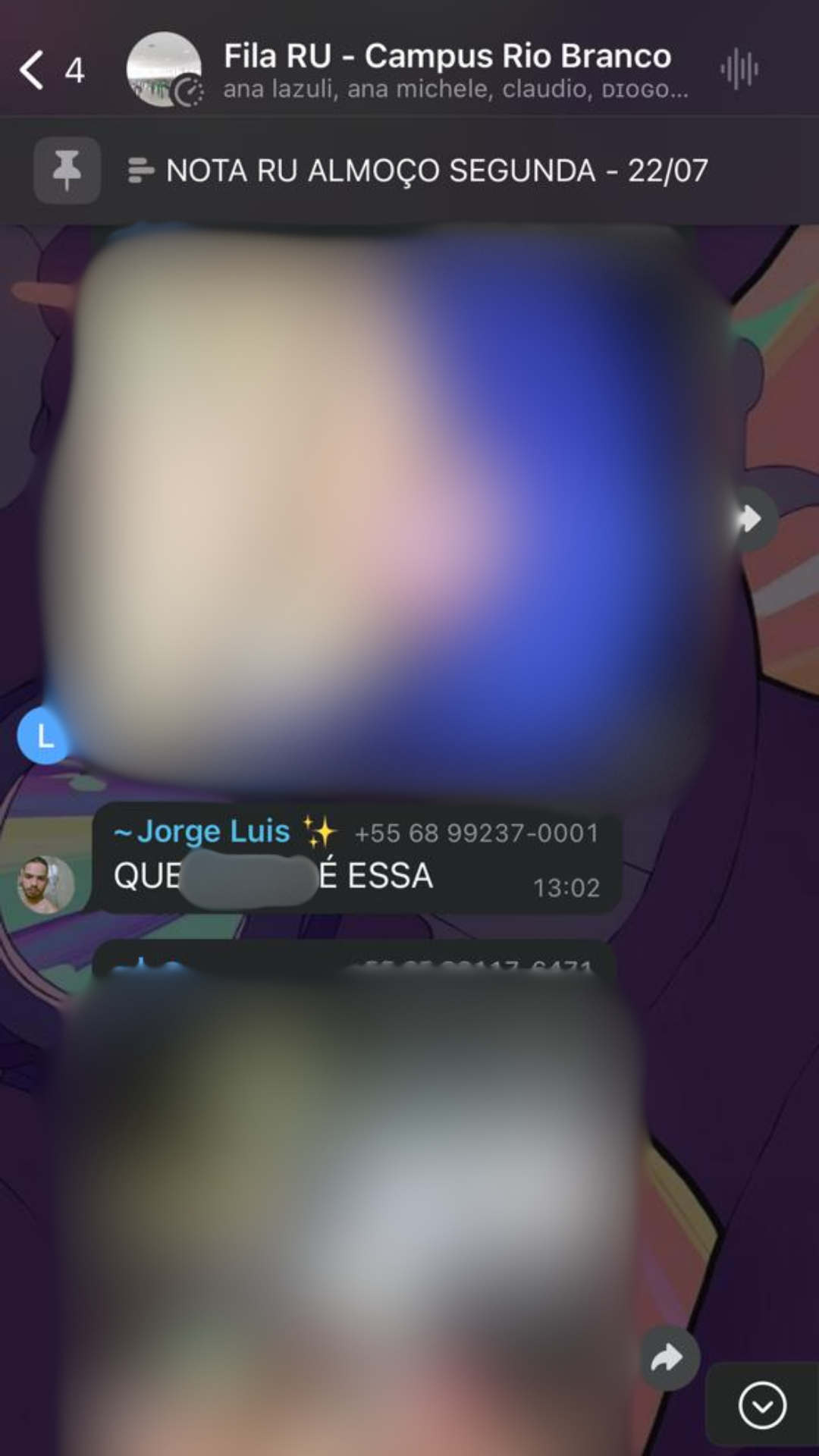 Como o intuito do grupo é falar sobre a fila e a comida e nota da mesma, peço de novo, evitem ao máximo conversas que não sejam relacionadas ao RU em si, isso só vai gerar mais movimentos iguais a esse