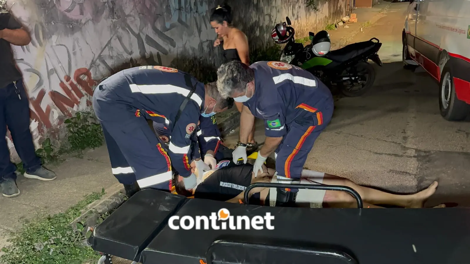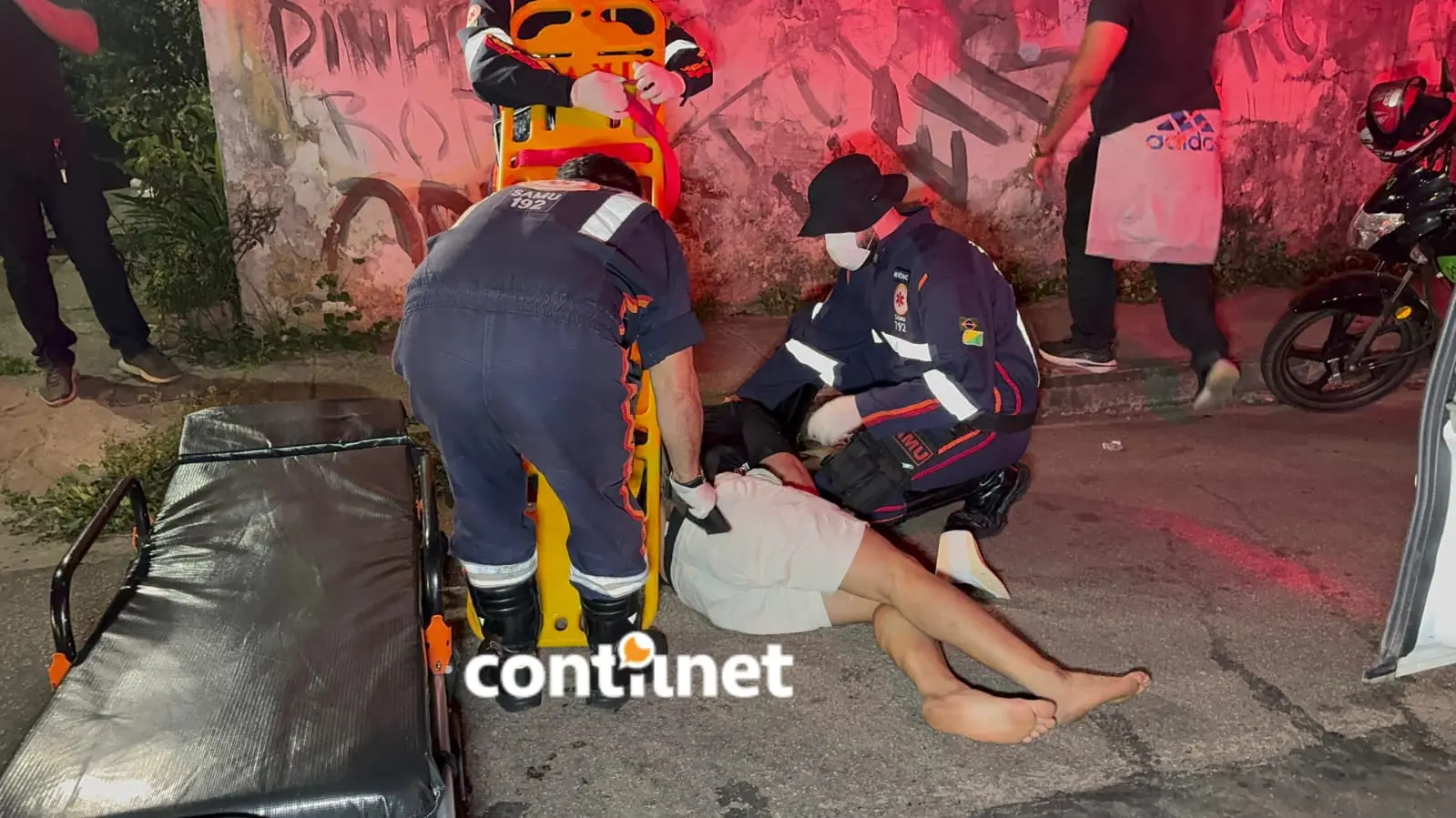 Renan Felisberto de Souza, de 26 anos, recebe atendimento de socorristas após se jogar de um veículo em movimento na Rua Francisco Mangabeira/Foto: ContilNet