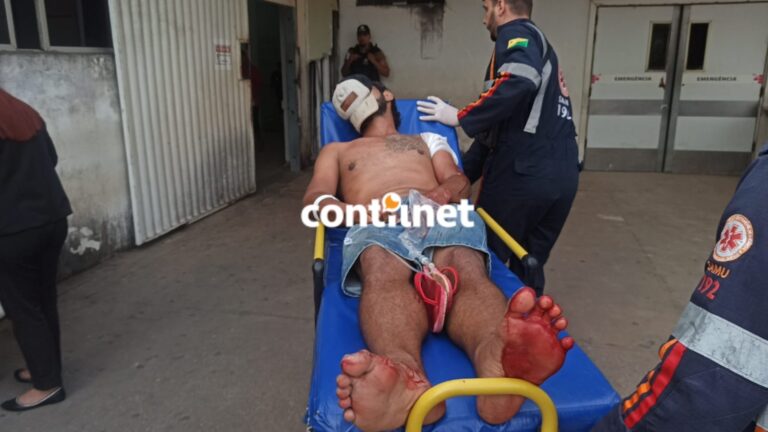 Ramisson Eduardo Amaral, 34 anos, recebe atendimento médico após ser atacado a facadas durante discussão em bar no bairro Baixada da Habitasa/Foto: ContilNet