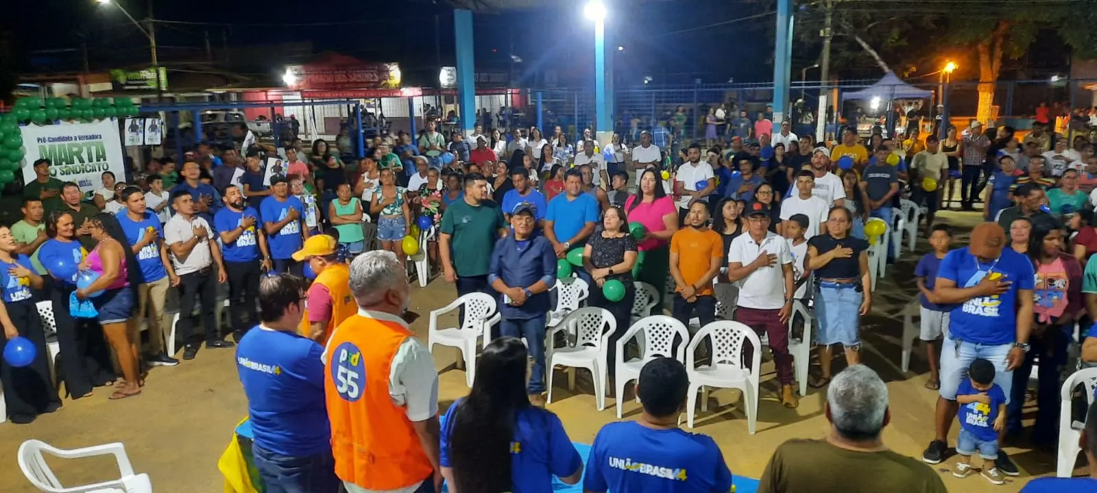 Com uma multidão lotando a plateia do palco no centro da cidade, o União Brasil e o PSD realizaram convenção unificada na noite deste sábado (27). O evento marcou a aclamação de Izaute Vaz e Charles Brandão como candidatos a prefeito e vice-prefeito de Manoel Urbano, respectivamente.
