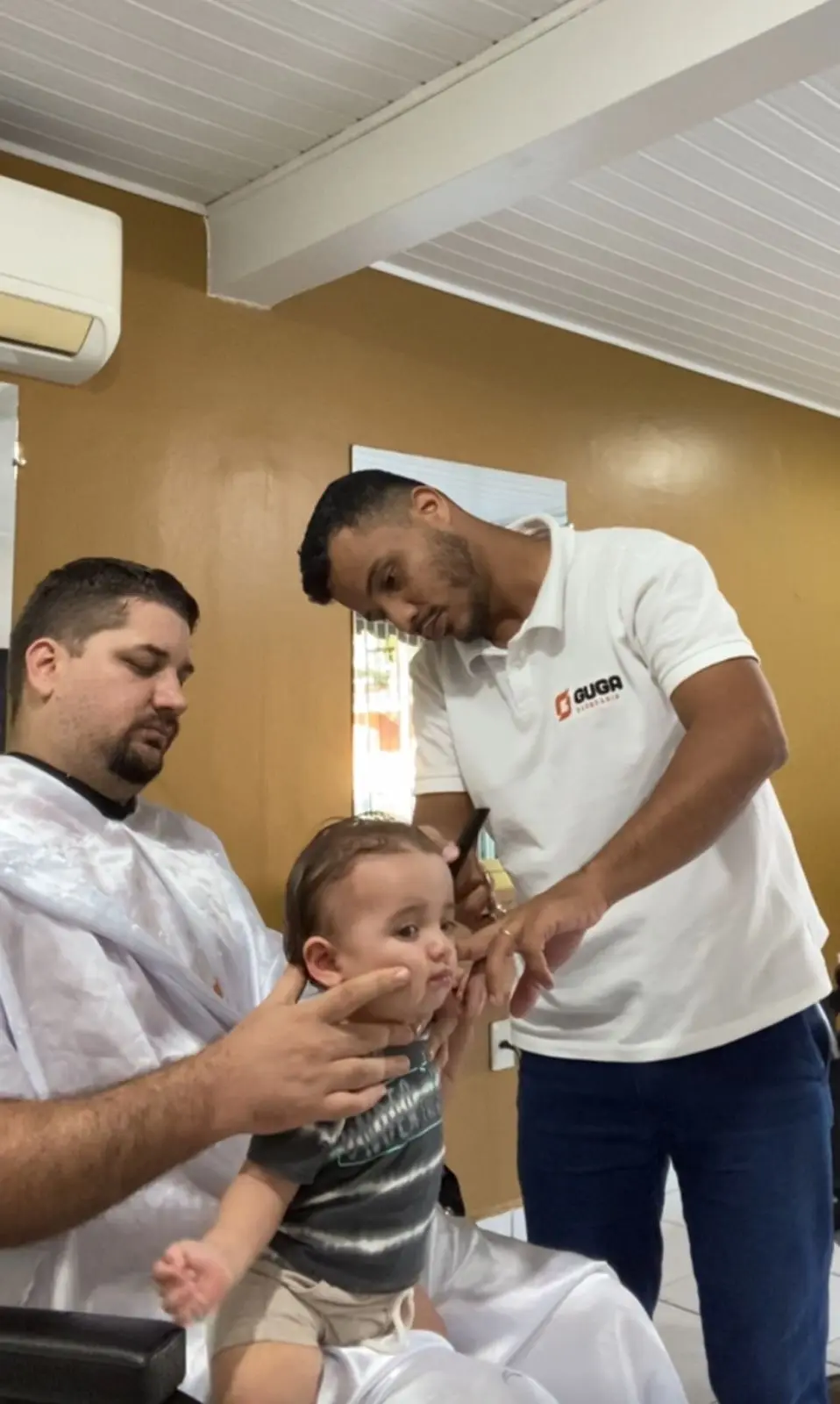 Augusto durante o trabalho na Guga Barbearia/Foto: Cedida
