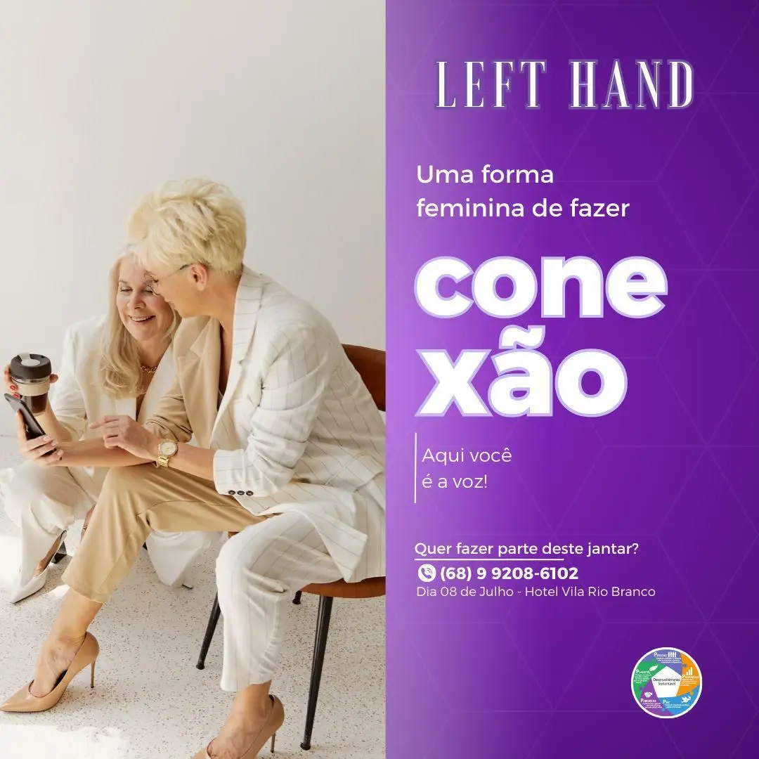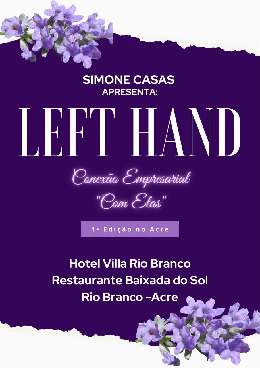 A primeira edição do Left Hand: conexão empresarial com elas, evento idealizado pela palestrante e mentora, Simone Casas, acontecerá no dia 8 de julho no restaurante Baixada do Sol, localizado no Hotel Villa Rio Branco. O encontro visa gerar conexões entre mulheres empreendedoras de Rio Branco e fortalecer laços profissionais e pessoais entre elas.