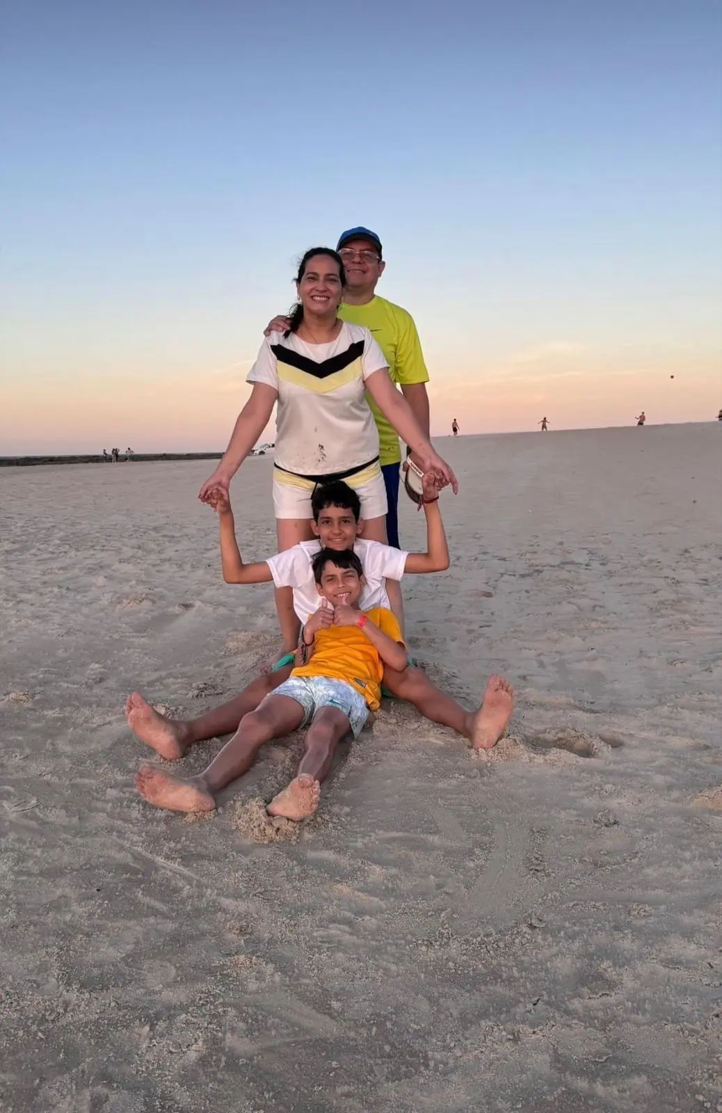 Registro dos médicos Ricardo e Melissa Ribera com os filhos Daniel e Levi, que curtem merecidos dias de descanso pelas paradisíacas praias do Nordeste.