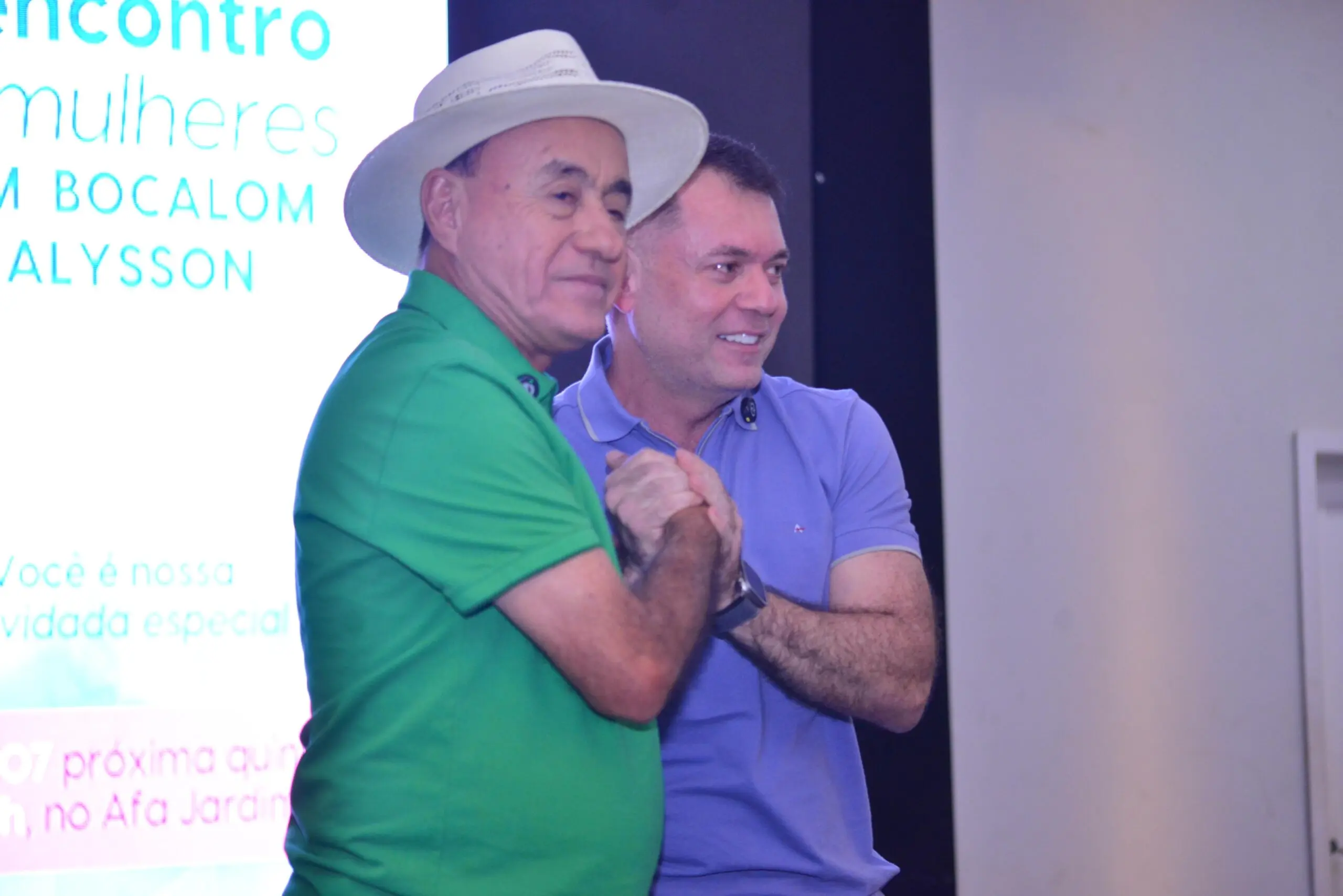 Únicos homens convidados a participar do evento, Bocalom e Alysson chegaram sob fortes aplausos. O pré-candidato Bocalom, de mãos dadas com Kelen, agradeceu o apoio de todas as mulheres presentes. “Mulherada, deixa eu falar uma coisa pra vocês: vocês são o que há de mais precioso feita por Deus. Eu tenho muito amor por todas as mulheres que já fizeram e fazem parte da minha vida. Minha Rainha Beth [sua ex-esposa, in memoriam] nunca deixará de ser rainha. Essa é a minha minha princesa [referindo-se a Kelen]. Obrigado, de coração, por todo o apoio de vocês”.