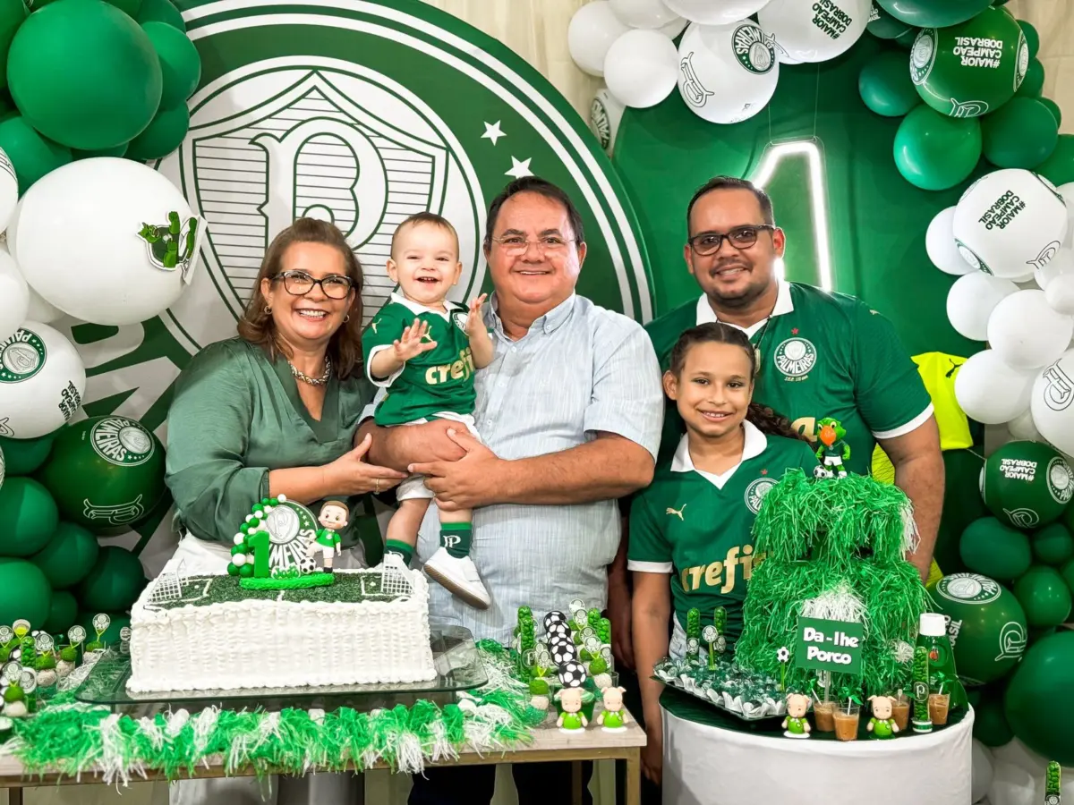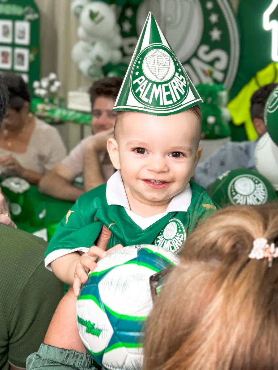 Quem conhece o empresário João Nunes Junior, sabe que ele, desde criança, é torcedor apaixonado e, digamos, fanático pelo seu time de coração, o Palmeiras. O torcedor do Verdão comemorou o primeiro ano do seu filho, João Nunes Neto, com a decoração temática do seu time de coração, o Verdão.