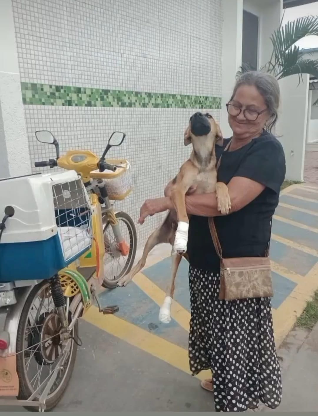 Dona Marcília usa sua bicicleta elétrica para realizar o transporte dos animais quando necessário/Foto: Cedida