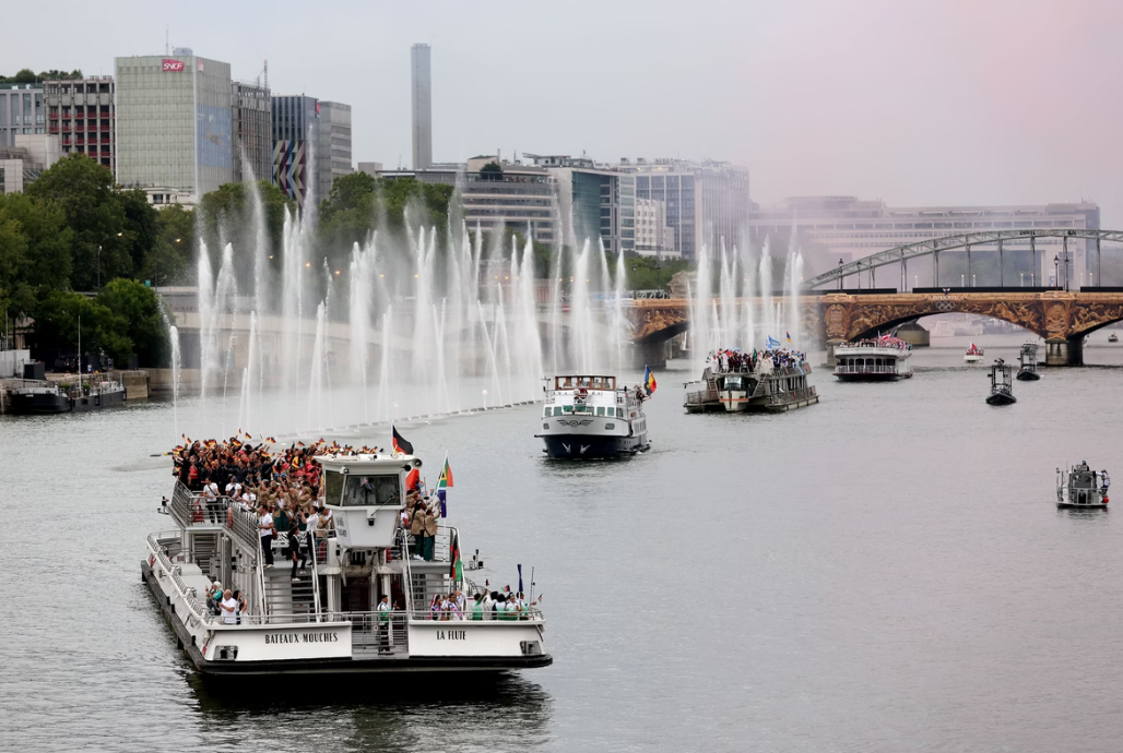 Cerca de 85 barcos levam os atletas ao longo do percurso. Mais de 400 dançarinos e três mil artistas participam da celebração. O trajeto teve início nas beiras do rio e irá percorrer um circuito de 5km. O ponto final do percurso será a Torre Eiffel. Por fim, o desfile das delegações foi encerrado com a França, país-sede do evento, e com os Estados Unidos, próxima nação a receber os Jogos Olímpicos.