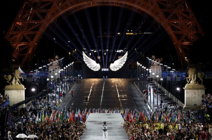 De mão em mão de lendas olímpicas, a tocha ainda passou por Nadia Comaneci e Carl Lewis, nomes de peso da ginástica artística e do atletismo. Na sequência, Amélie Mauresmo recebeu a tocha ao redor do Sena e correu até chegar ao Museu do Louvre, onde o revezamento ainda passou por nomes icônicos do esporte francês até chegar aos multicampeões olímpicos Marie-José Perec e Teddy Riner, que levam a chama até a pira, em formato de balão, e a acendem.