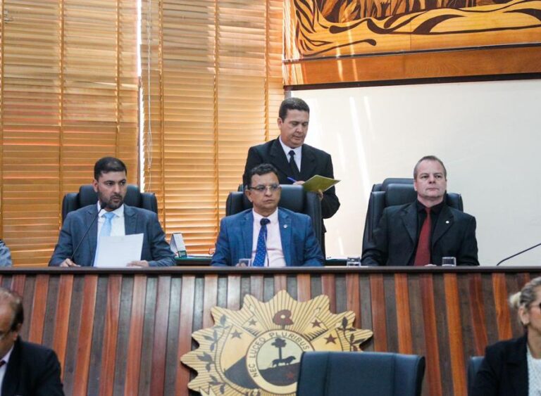 Nicolau, Luiz Gonzaga e Pedro Longo na Mesa Diretora/Foto: Ascom