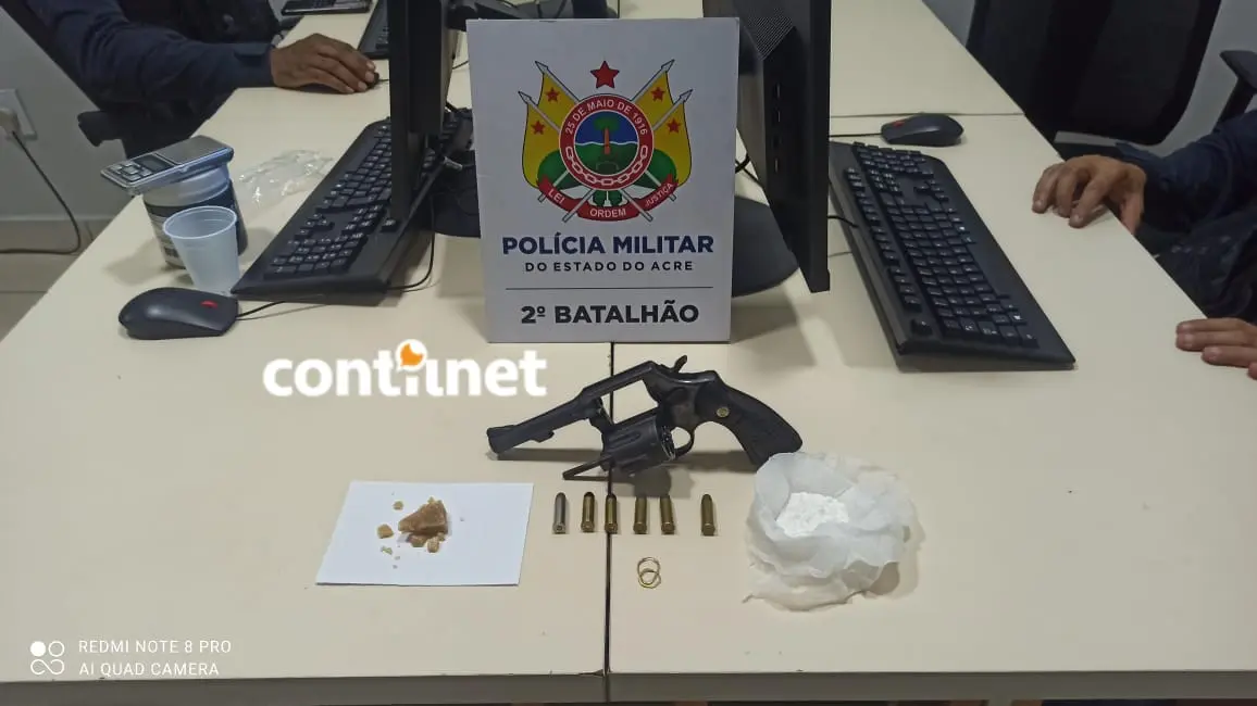 Com a informação, os militares entraram na travessa e logo avistaram a pessoa mencionada pelo morador. Ao ver a viatura se aproximando, Mateus começou a correr e entrou em uma casa. Os PMs fizeram o acompanhamento e, ao entrar no imóvel, os agentes encontraram, ao lado da cama, cerca de 12 gramas de cocaína e 12 gramas de crack. Embaixo de um travesseiro foi encontrado um revólver calibre 38 com seis munições intactas.