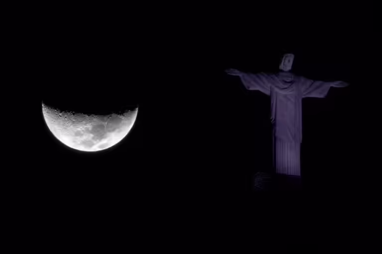 Lua crescente aparece ao lado da estátua do Cristo Redentor, no Rio de Janeiro — Foto: MAURO PIMENTEL / AFP