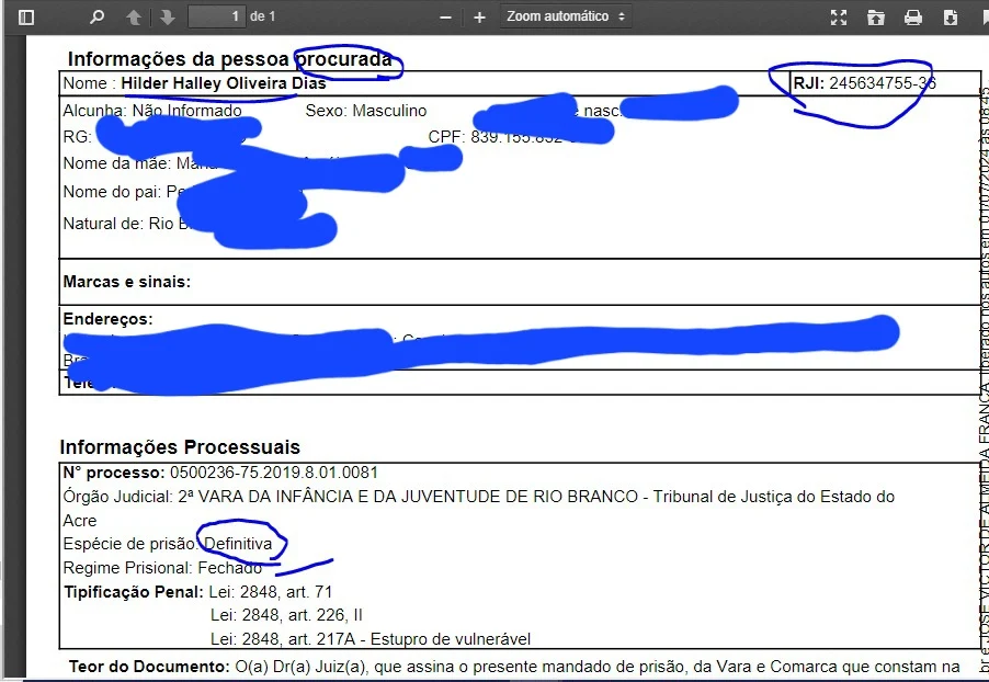 O servidor federal do Ministério da Saúde, Hilder Halley Dias, teve sua prisão decretada pela 2ª Vara da Infância e da Juventude de Rio Branco.