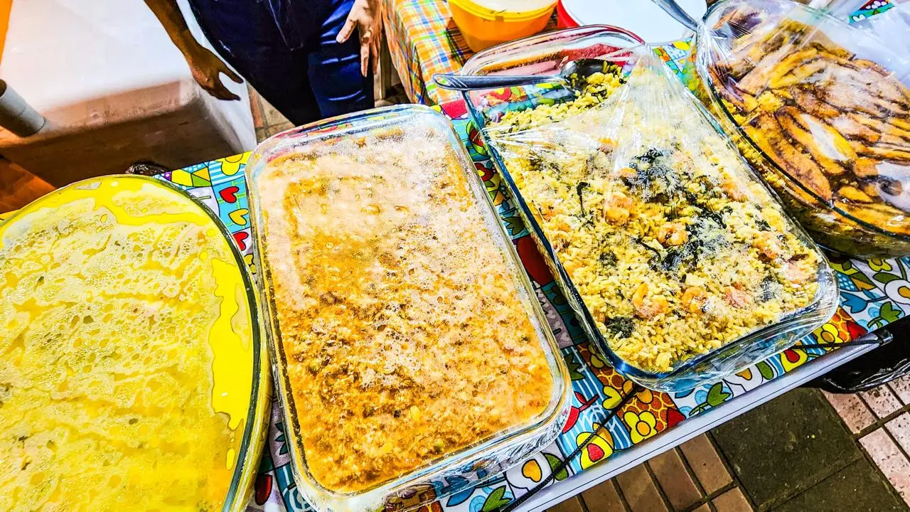 As empreendedoras trouxeram galinha picante, arroz paraense, pirarucu à casaca, estrogonofe e bobó, que são exemplos de comidas típicas do Acre.