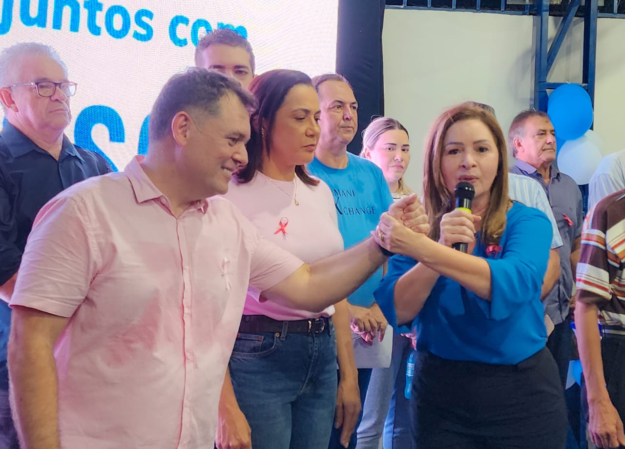 Socorro Neri e o governador Gladson Cameli, no momento em que se filiou ao Progressistas. Foto: redes sociais
