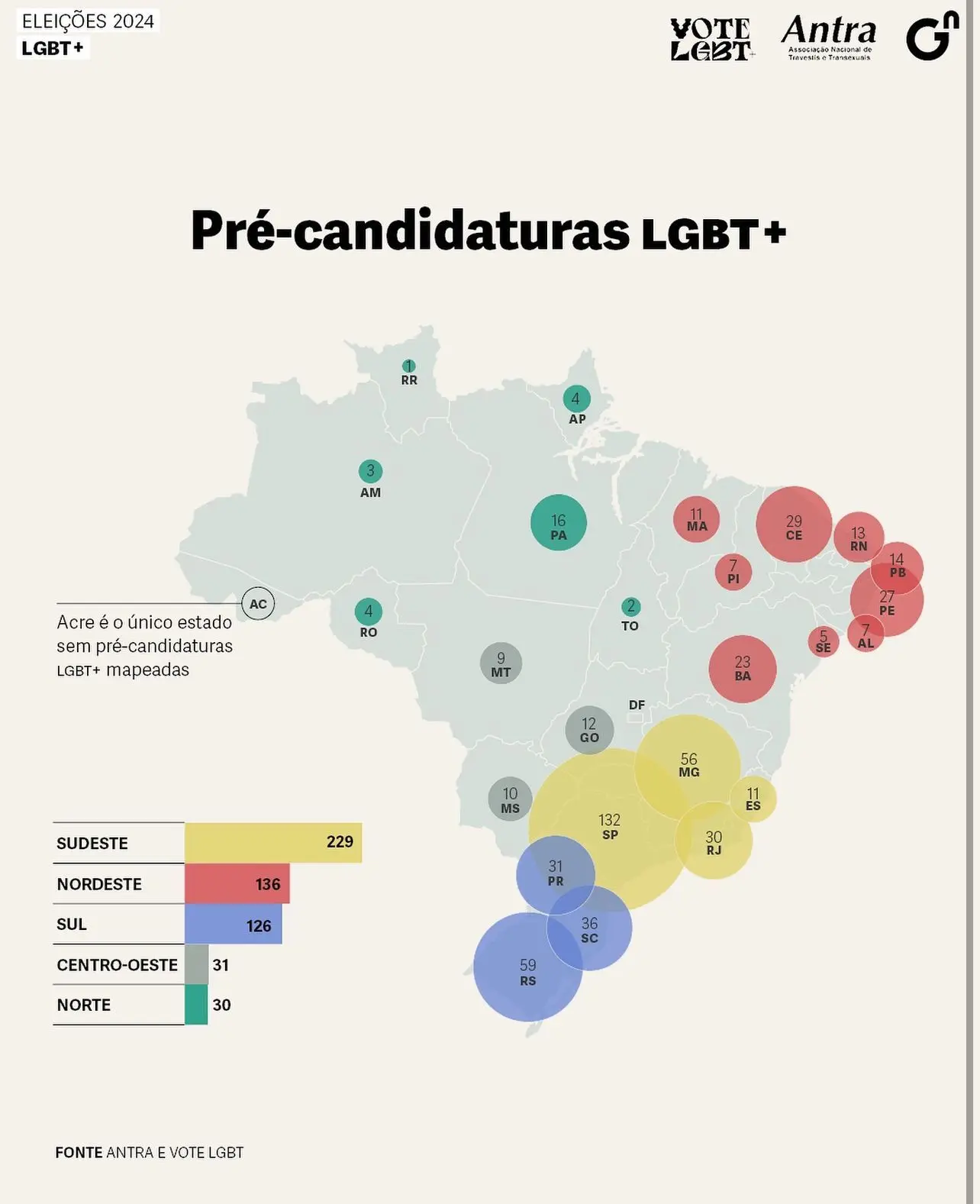 Um levantamento feito pelo VoteLGBT e a Antra (Associação Nacional de Travestis e Transexuais) revelou que o Acre é o único estado do país sem candidaturas LGBT+ nas eleições de 2024.