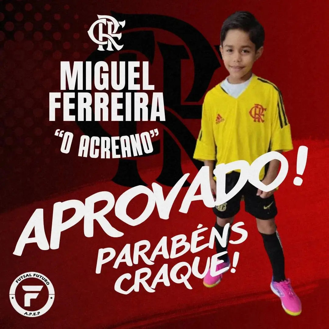 O pequeno Miguel Ferreira de Araújo, de 7 anos, é natural de Brasiléia, no interior do Acre. Conhecido nas redes sociais como “Acreano”, passou em um teste do Flamengo e antes do final de 2024 estará vestindo a camisa do time em campeonatos de futebol de salão, conhecido como Futsal.