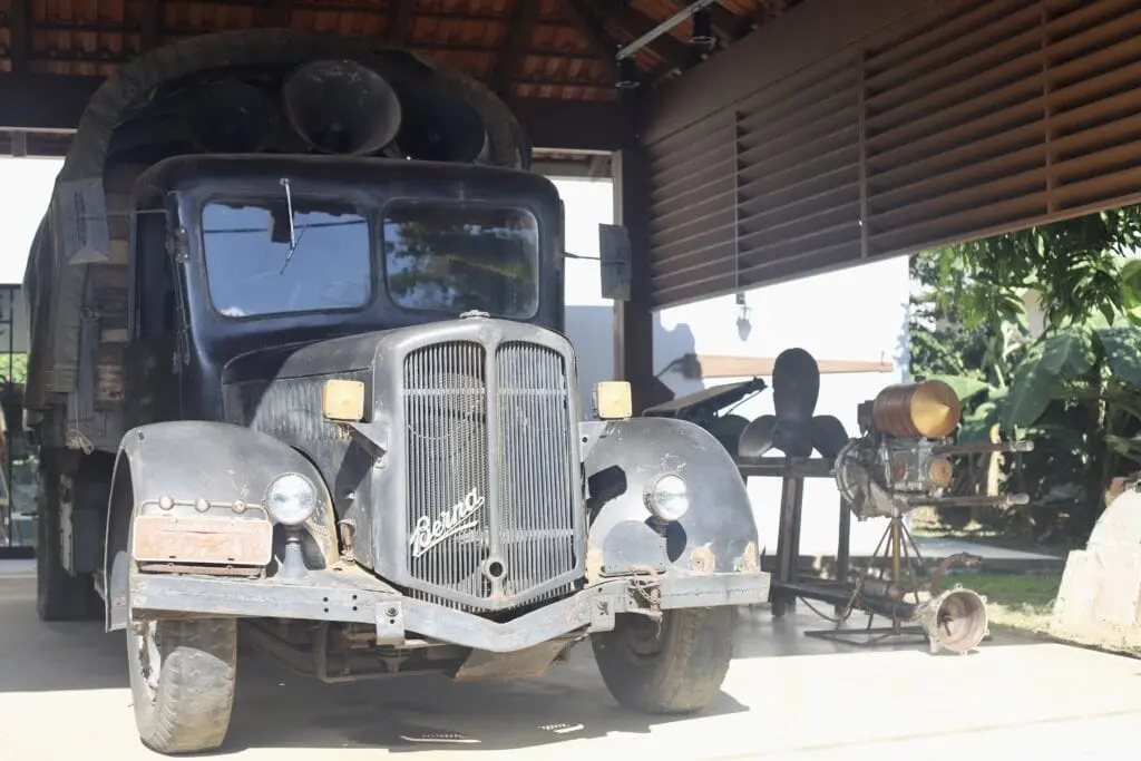 O caminhão usado pelo exército alemão na 2ª Guerra Mundial teve as peças originais preservadas e é uma das grandes atrações do local, onde as pessoas podem conhecer o veículo e também posar para fotos.