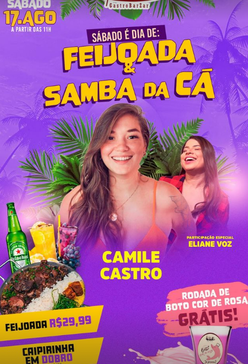 Na Casa do Rio, sábado (17) é dia de Feijoada e Samba da Cá com Camile Castro e participação especial de Eliane Voz.