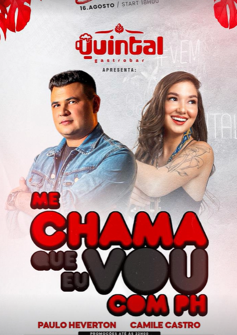 No Quintal GastroBar, o “Me Chama que Eu Vou” reúne Paulo Heverton e Camile Castro na sexta (16).