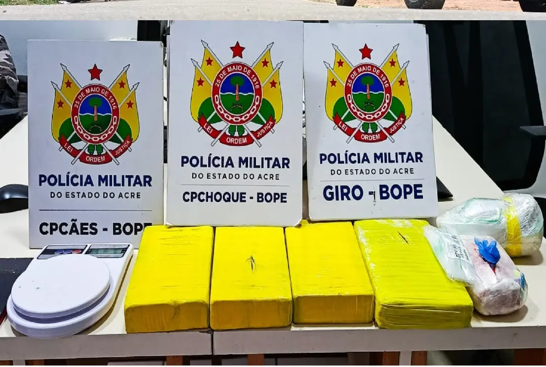 Policiais militares da Companhia de policiamento de choque (Cpchoque), Grupo de intervenção rápida e ostensiva (Giro) e da Companhia de policiamento com cães (Cpcães) apreenderam na tarde de terça-feira, 05, no bairro Vitória, 4.5 quilogramas de entorpecentes, após denúncia anônima.