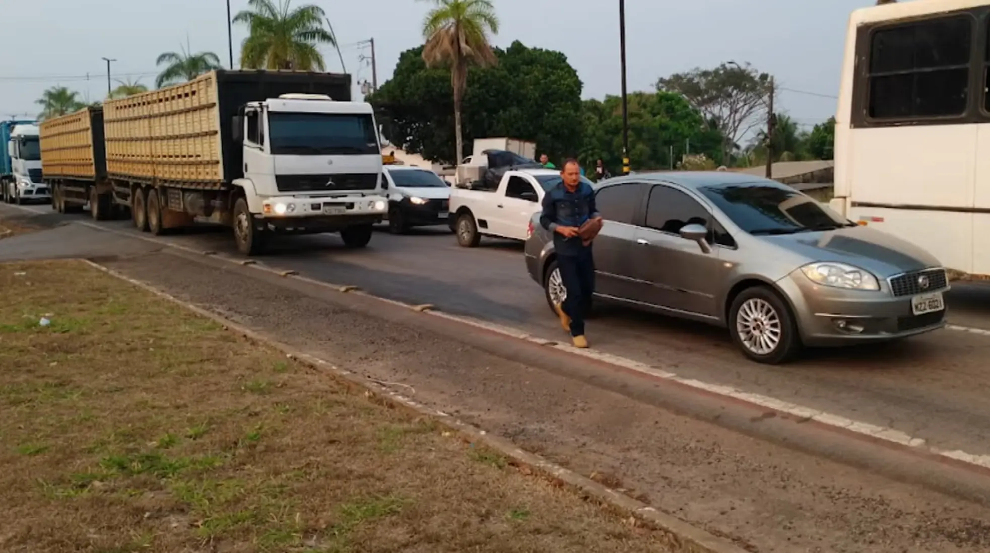 Uma fila quilométrica se formou em um dos lados da pista da BR-364, principalmente de veículos que chegam de outros municípios e do aeroporto da capital.