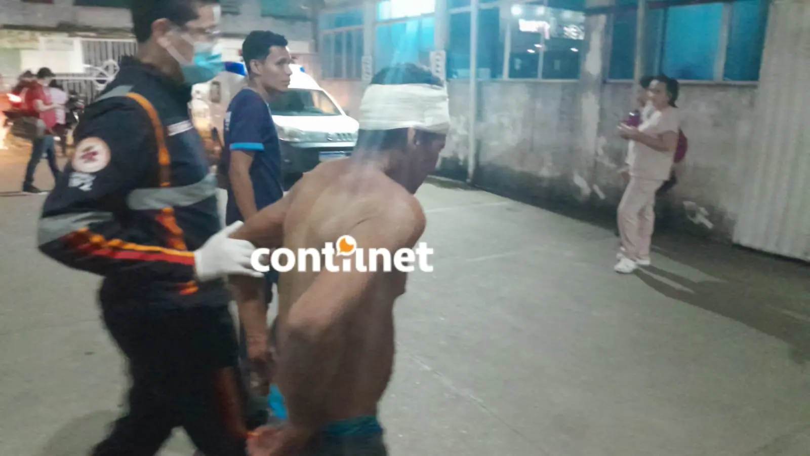 Equipe do Samu prestando atendimento de emergência a Alex Silva de Souza, que foi ferido na cabeça durante uma briga familiar/Foto: ContilNet