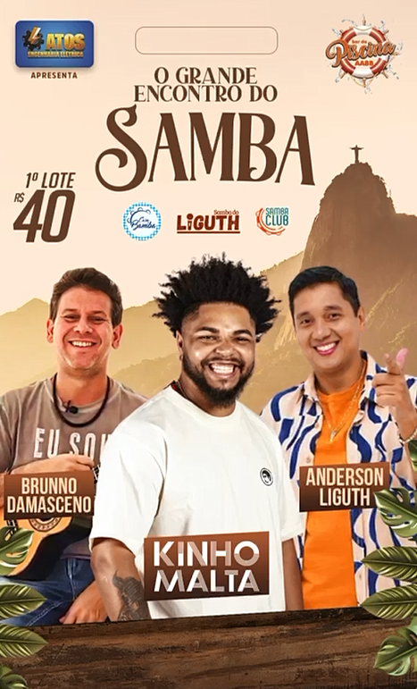 Os ingressos por R$40, mas segundo a organização, aumentará em breve. No palco, estarão Brunno Damasceno e Anderson Liguth, trazendo o melhor do samba, além de Kinho.