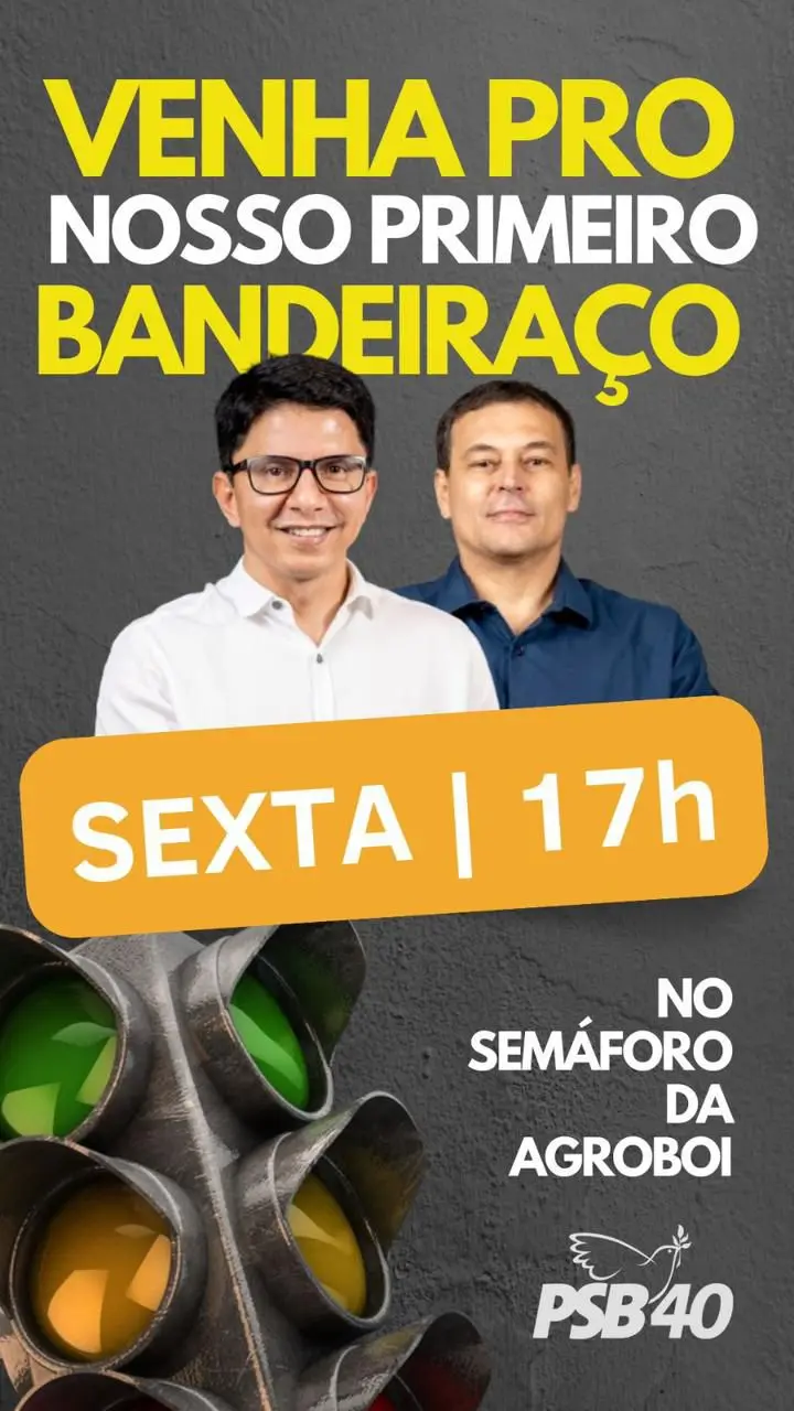 O candidato do PSB, Jenilson Leite fará uma bandeiraço a partir das 17h no sinal da Agroboi, na Avenida Ceará.