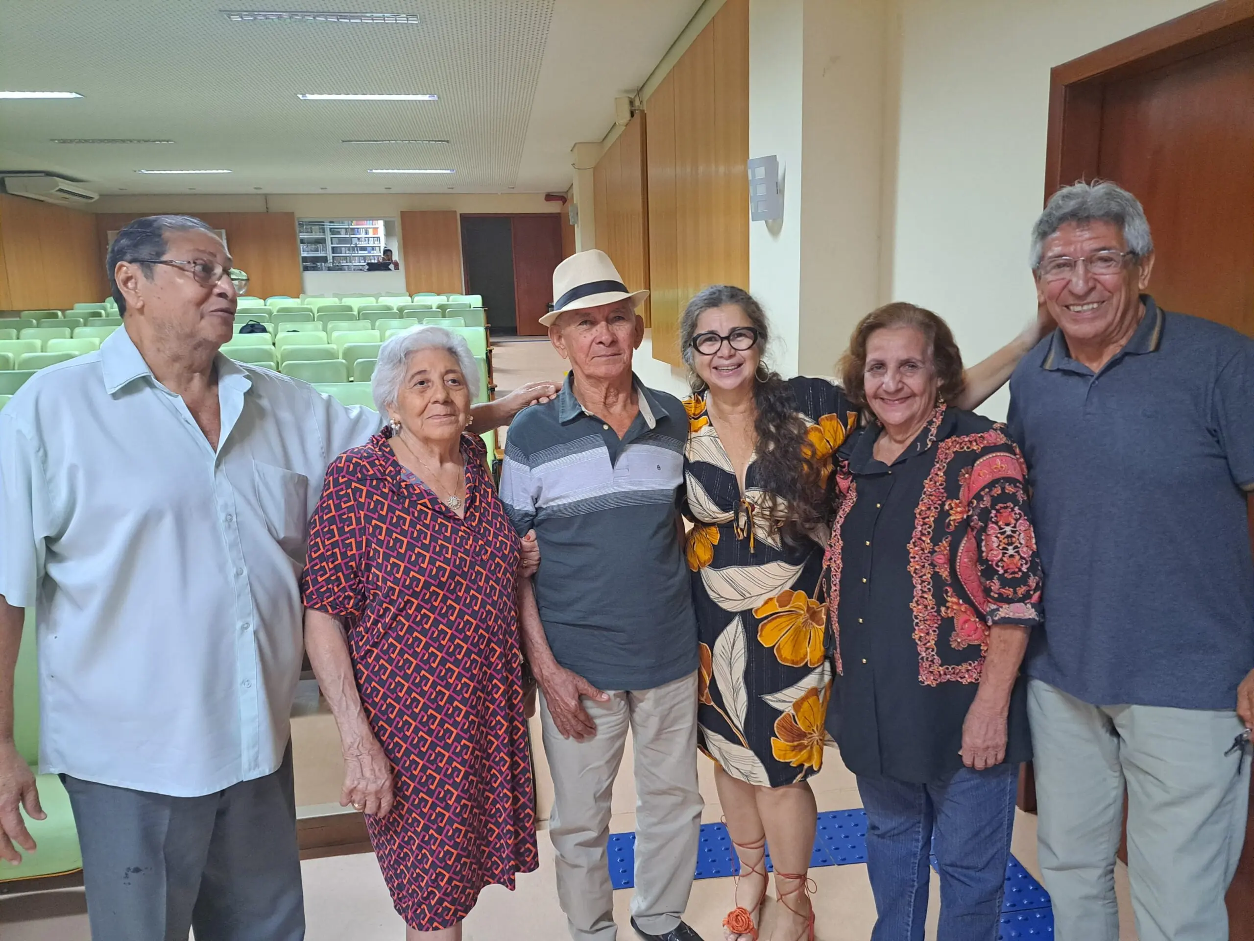 Dona Gilcélia, segunda à esquerda. Ao lado dela, o senhor Pedro/Foto: Cedida