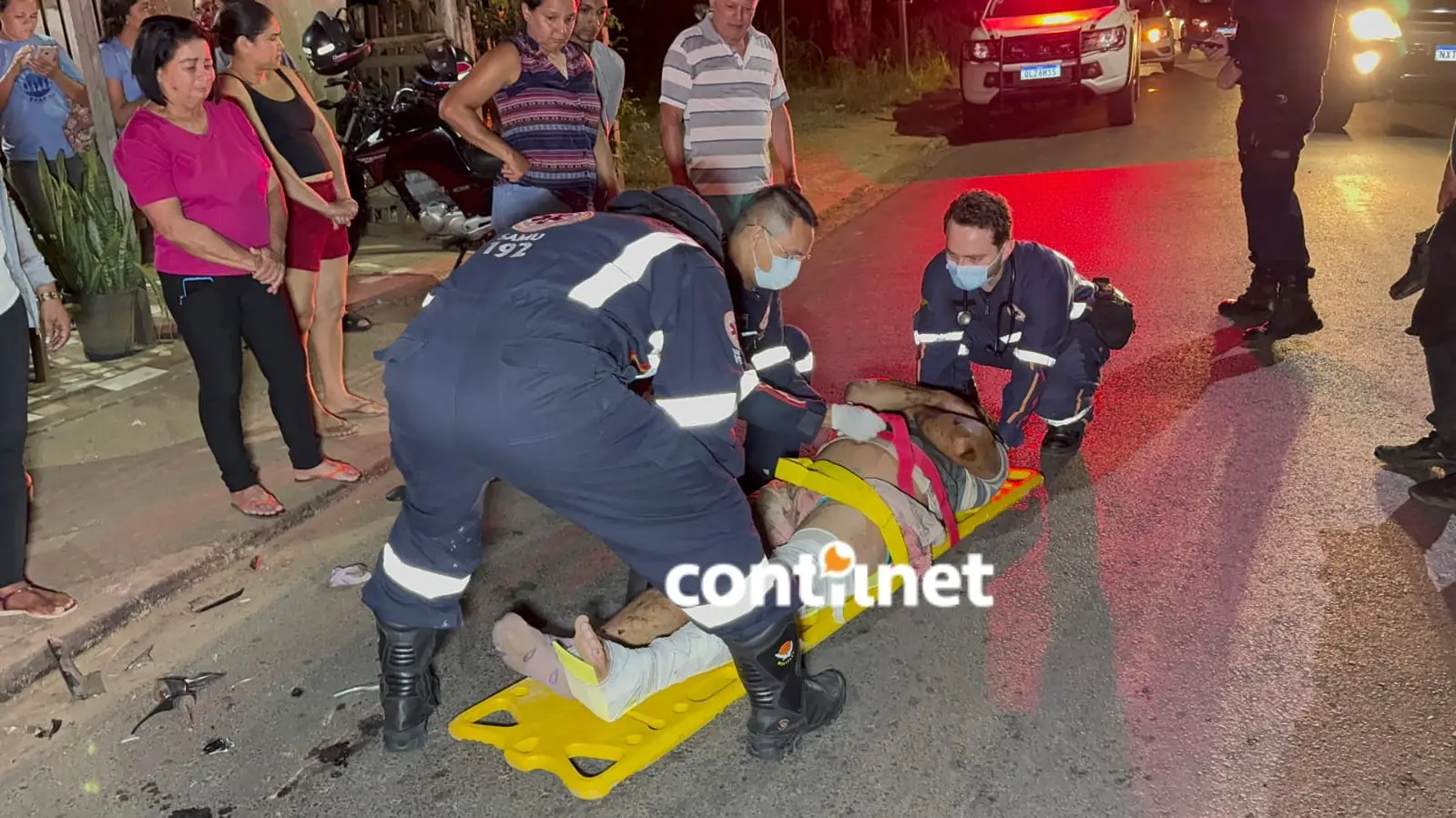 Momentos após o acidente no Ramal Bom Jesus: Equipes do Serviço de Atendimento Móvel de Urgência (Samu) prestam socorro a Alisson dos Santos Lopes e Jhon Max de Souza Amorim. Ambos foram encaminhados ao pronto-socorro de Rio Branco para tratamento de suas lesões/Foto: ContilNet